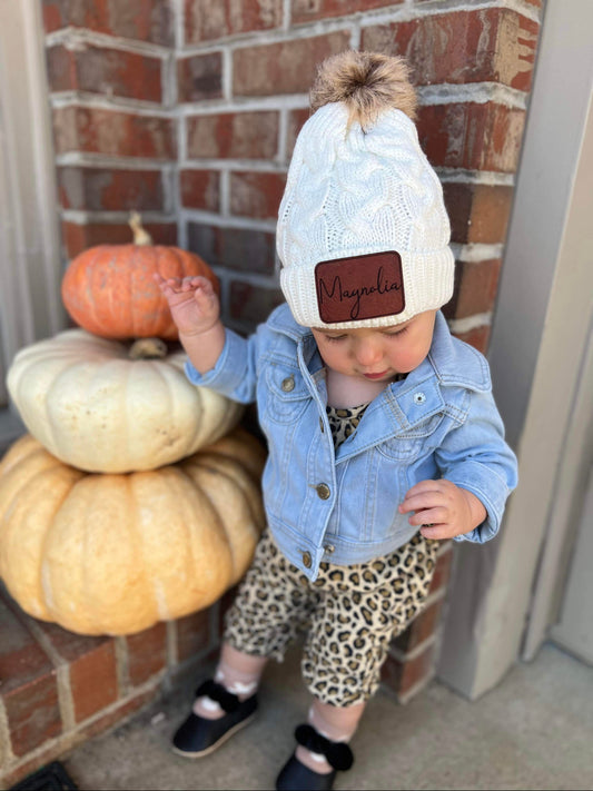 Baby Name Patch Beanie with POM